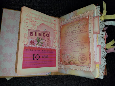 In this book I used lace trimming. Always looking to learn something new. In one of Daisy Collins live video I saw her add an envelope in the middle of the book, I fell in love with that so I had to try it.